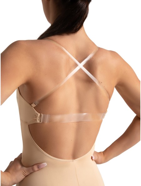 Body Ringrave avec soutien-gorge technologie bratek intégré signé Capezio a été spécialement dessiné de manière à être porté en dessous de beaucoup de tenues sans être visible. Grâce à ses matières uniques et à sa couleur chair, son effet seconde peau en fait un article de danse à la fois incontournable et basique pour combiner avec les vêtements fluides de danse pour une invisibilité parfaite, et à la fois idéal et indispensable pour chaque danseuse. De haute qualité, ce justaucorps dispose de la technologie DanceDry permettant une meilleure évaporation de l'humidité et un séchage ultra rapide. Il dispose également de la protection Meryl Skinlife® et de la technologie DanceFresh® antimicrobienne. Bretelles fournies : transparentes.