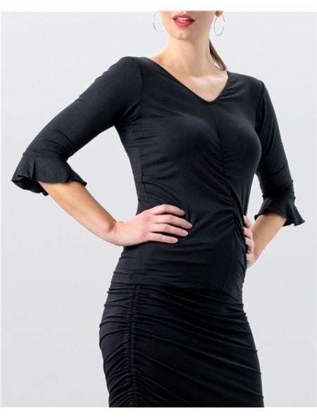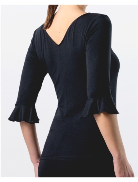 Haut de danse pour femme Talvi en noir avec encolure en V et manches à volants