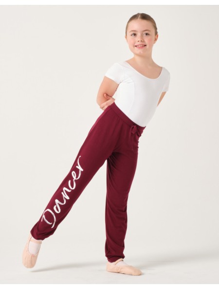 Le pantalon unisexe Temps Danse® avec son grand logo « DANCER » est idéal pour tous vos cours de danse. En viscose stretch, il offre confort idéal pour vos cours. Resserré en bas, il permet de mettre en valeur le travail des jambes.