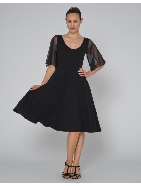 Sa coupe fluide et évasée accompagne parfaitement chaque pas et met la silhouette en valeur, tandis que ses manches papillon en tulle légèrement transparent apportent légèreté et raffinement. Les jolis décolletés en V devant et dos soulignent la ligne avec élégance.