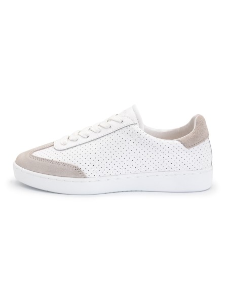 L'ultime basket de danse pour homme 7420 avec une semelle complète en PU pour des mouvements sans effort et une adhérence parfaite ! Cette basket de danse urbaine associe un cuir nappa blanc perforé de haute qualité à des touches de daim beige. La doublure en cuir absorbant l'humidité assure un port confortable, tandis que la semelle intérieure recouverte de cuir, rembourrée et amovible, garantit un soutien et un amorti parfaits à chaque pas. Avec son design moderne et sa fonctionnalité optimale, la Suny 7420 est le compagnon idéal pour les longues soirées dansantes, que ce soit à l'intérieur ou à l'extérieur. Coupe : Cet article est la dernière forme “Suny I“. Tous les articles avec cette dernière forme ont un look comparable, selon le matériau et la coupe. Trouver la bonne taille! Matière : Cuir perforé nappa et daim très doux et de haute qualité, respirant et épousant parfaitement la forme du pied Doublure : Confort de port exceptionnel (sensation de danse) grâce à la doublure en cuir respirante et absorbant l'humidité Semelle intérieure : Semelle intérieure exceptionnellement douce, flexible et amovible pour un confort maximal Semelle intercalaire multi-larges La semelle intercalaire multi-larges permet un ajustement personnalisé et peut être retirée pour donner plus d'espace aux pieds plus larges Semelle extérieure en PU Extrêmement flexible et légère comme une plume, pour danser et tourner de manière contrôlable, à l'intérieur comme à l'extérieur