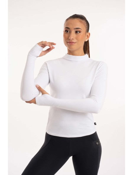 T Shirt à col roulé et manches longues, coupe ajustée avec intérieur en tissu brossé. Passants pour les pouces.